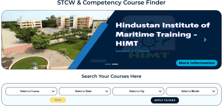 The Competency Course Finder provided by Merchant Navy Decoded is intended solely for informational purposes. The colleges listed here are DG approved for Competency Courses, STCW & Advanced Courses. Please note, we do not promote or recommend these colleges for Pre-Sea Training Courses.